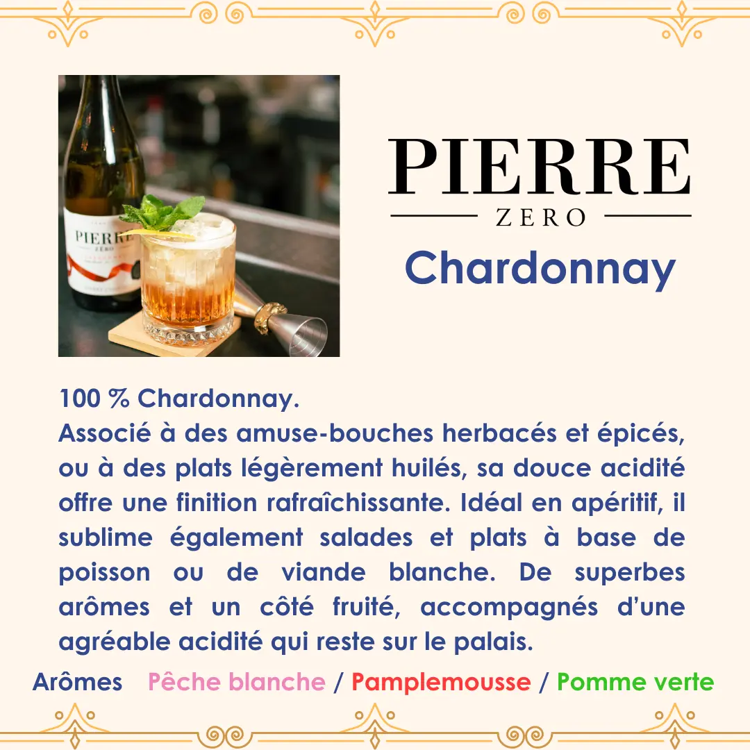 La marque Pierre Zéro est spécialisée dans les vins sans alcool, offrant au consommateur le goût et les bienfaits d’un vin de qualité sans consommation d’alcool. Elle a réussi à supprimer l’alcool des grands vins tout en conservant leur goût et leur caractère, et propose un nouveau type de vin auquel tout le monde peut trinquer, qu’il s’agisse de buveurs réguliers ou de non-buveurs, quelle que soit l’occasion.